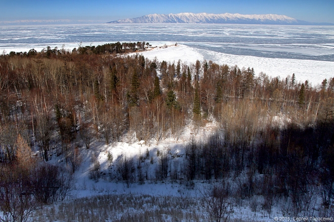 Вот здесь начинается Баргузинский залив. На горизонте — Святой Нос.