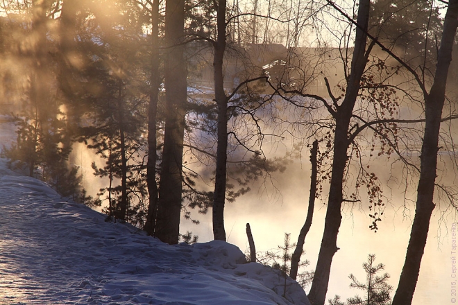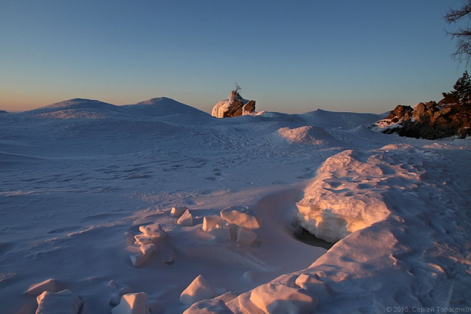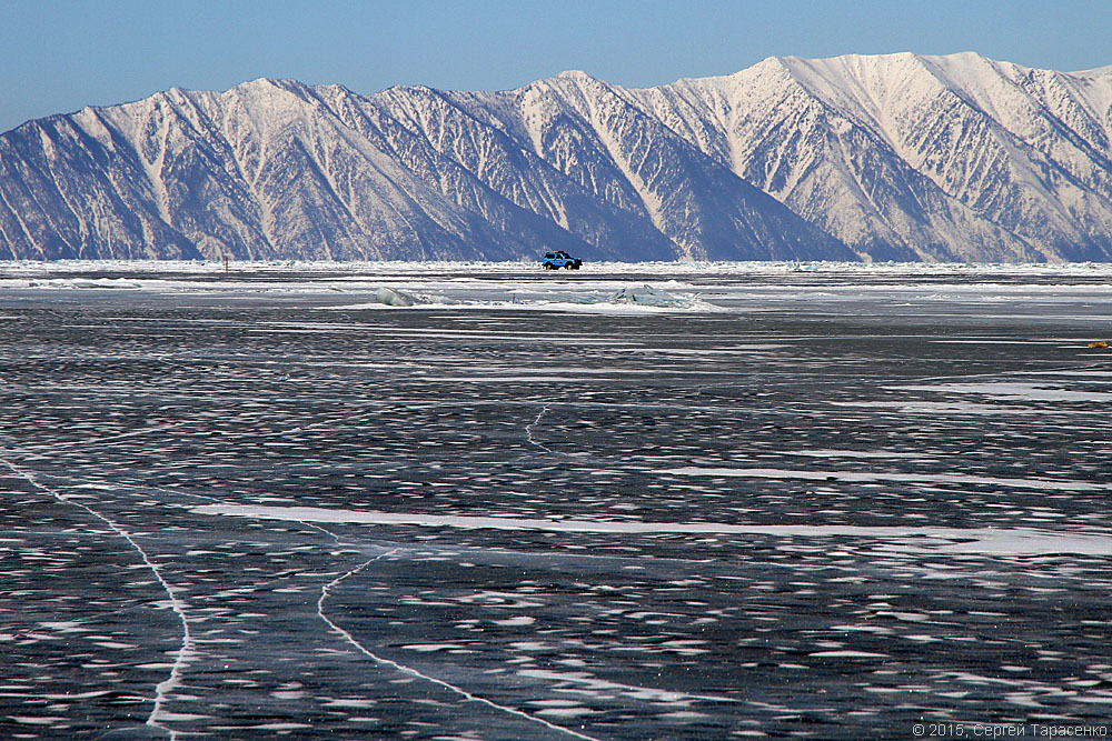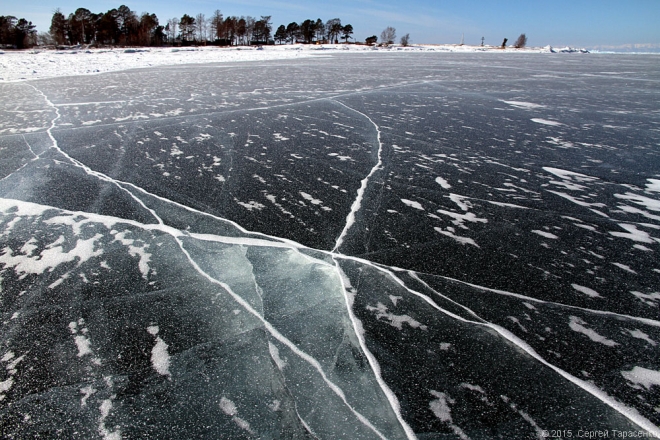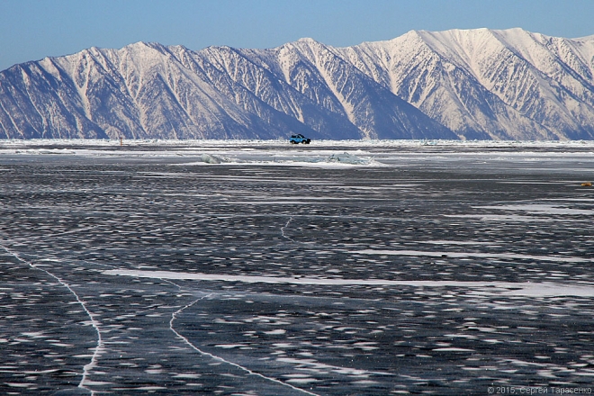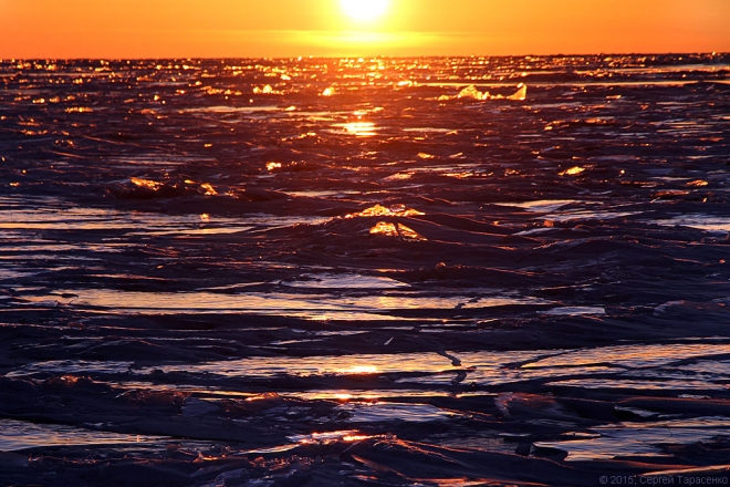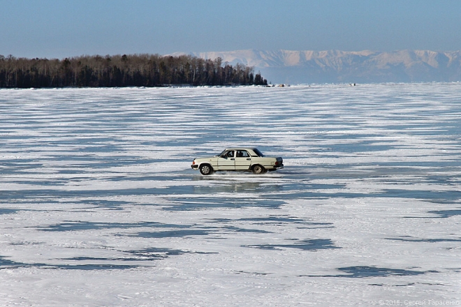 А лёд-то в этом году совсем тонкий, не больше полметра. Всё вокруг трещало и напоминало перестрелку. Идти было довольно страшновато… Пока нас не обогнал автомобиль с рыбаками. ))