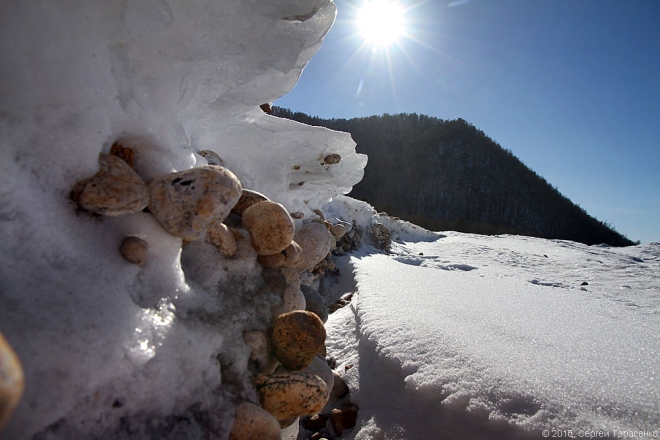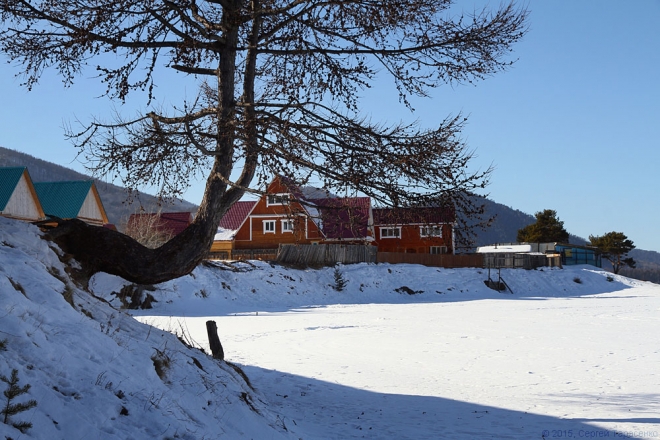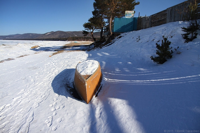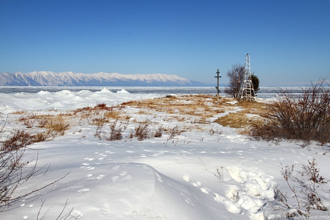 Стартовали мы от мыса Крестового. Назван мыс так из-за своей формы, когда-то напоминавшей крест. Но в результате подъёма воды после сооружения каскада Иркутских ГЭС он изменил свои очертания. На протяжении последних столетий жизнь на Крестовом кипела — он находился на караванном пути от Верхнеудинска до Баргузина и далее. Здесь были постоялые дворы, где меняли лошадей. Была гостиница, которая сгорела после революции. Сейчас мыс тоже вполне обитаем, практически круглый год тут живут рыбаки.