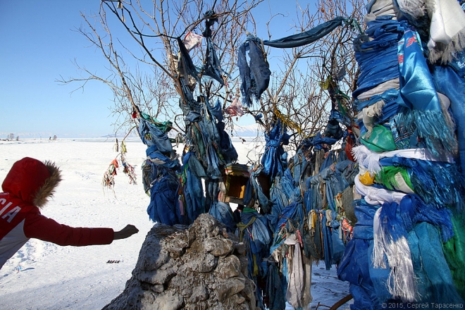 А у самой дороги, на берегу губы Крестовой есть и бурхан. Все проезжающие здесь бросают монетки или «капают».
