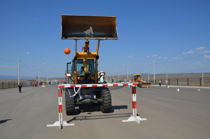 Машинисты бульдозера и водители самосвала соревновались в фигурном маневрировании, машинисты автогрейдера и машинисты погрузчика кроме фигурного маневрирования еще проходили дистанцию с препятствиями. Для автогрейдера стояла задача сбить 18 кубиков, установленных на разной высоте (20, 30 и 40 см), при этом не задев площадки, на которых установлены кубики, а машинисты погрузчика играли в «баскетбол», их задачей было снять с перекладины баскетбольный мяч (при этом не уронить перекладину) и, проехав между препятствиями, с максимальной высоты поднятия ковша попасть в специально установленную сетку.